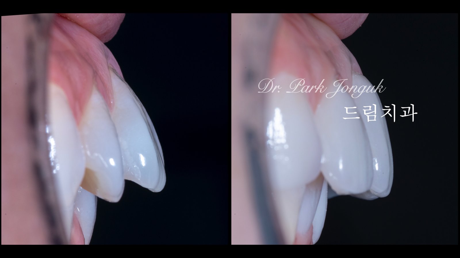 환자분은 앞니 두 개가 다른 치아들보다 현저하게 뻐드러져 돌출되어 있었습니다.