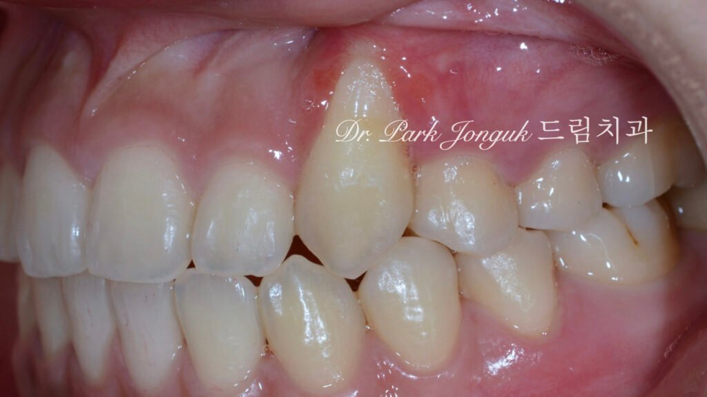 사진 1은 초진 상태입니다. 견치(Canine) 치은이 퇴축되었습니다.